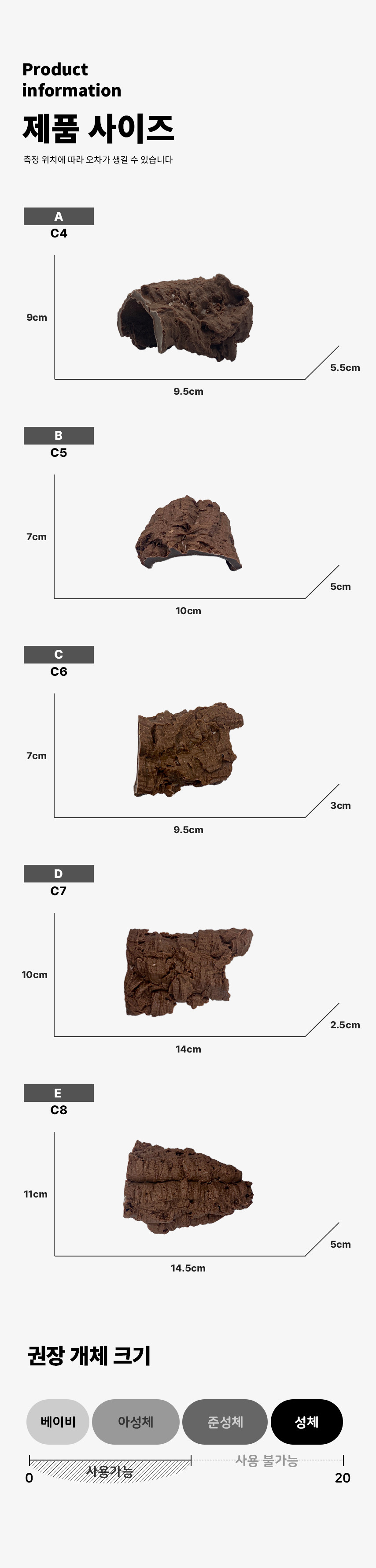 C: 가로 9.5cm * 세로 7cm * 높이 3cm