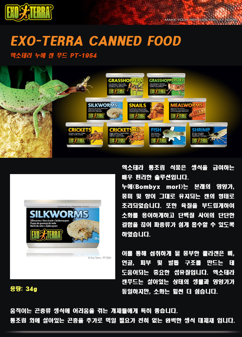 [EXOTERRA] 엑소테라 누에 캔 푸드 34g