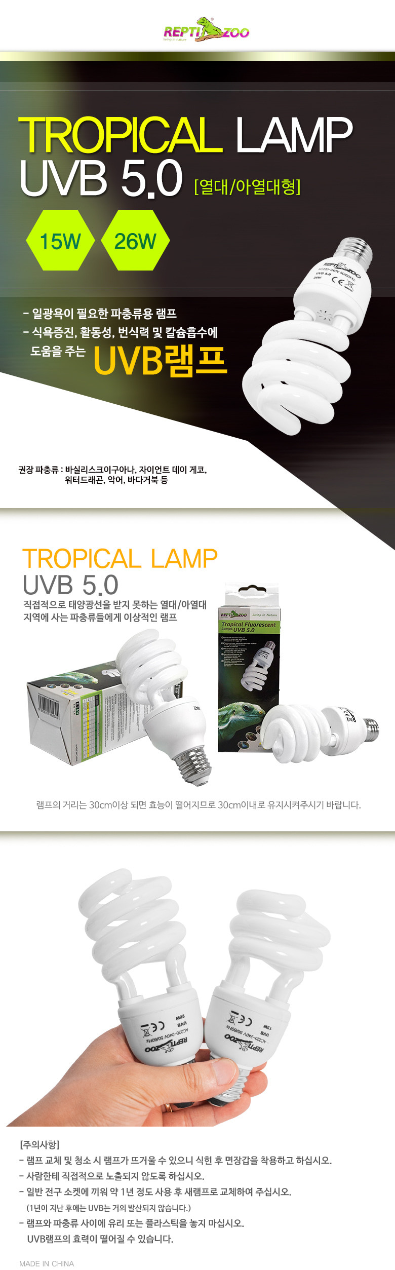 [REPTIZOO] 렙티주 아열대형 UVB 5.0 15w/26w